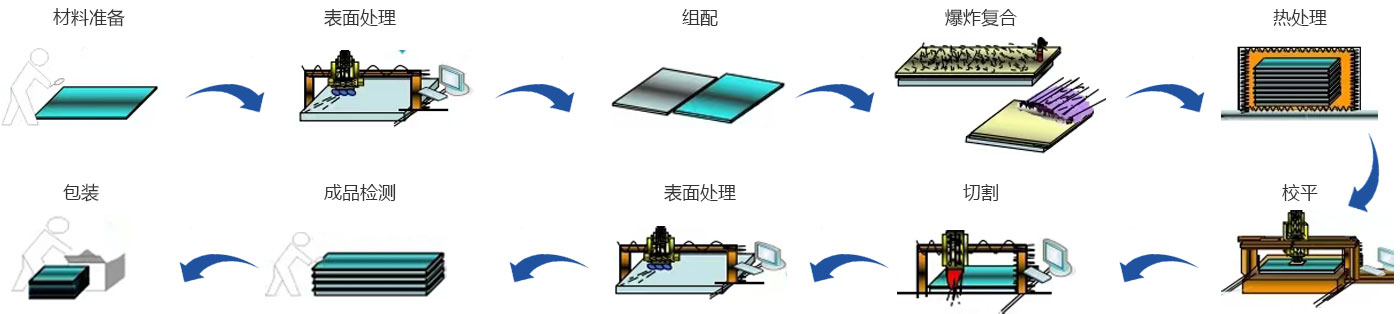 不銹鋼復合板爆炸復合的生產方法?! ”◤秃鲜菍⒉讳P鋼板重疊置于碳鋼基板上,不銹鋼板和碳鋼基板之間用墊子間隔出一定的距離,在不銹鋼板上面平鋪炸藥,炸藥爆炸的能量使不銹鋼板高速撞擊碳鋼基板,產生高溫高壓使兩種材料的界面實現固相結合。 不銹鋼復合板是以碳鋼基層與不銹鋼覆層結合而成的復合板鋼板。它的主要特點是碳鋼和不銹鋼形成牢固的冶金結合,可以進行熱壓、冷彎、切割、焊接等各種加工,有良好的工藝性能。不銹鋼復合板的基層材料可以使用Q235B、Q245R、Q345B,Q345R等各種普通碳素鋼和專用鋼。覆層材料可以使用304、316L、321和雙相不銹鋼等各種牌號的不銹鋼。材質和厚度可以自由組合,滿足不同用戶的需要。不銹鋼復合板已經廣泛應用于石油、化工、鹽業、水利電力等行業。不銹鋼復合板作為一種資源節約型的產品,減少貴重金屬的消耗,大幅度降低工程造價。實現低成本和高性能的***結合,有良好的社會效益?! 〔讳P鋼復合板是怎樣生產的呢?不銹鋼復合板工業化生產主要有兩種方法,爆炸復合和熱軋復合。爆炸復合板的生產工藝是將不銹鋼板重疊置于碳鋼基板上,不銹鋼板和碳鋼基板之間用墊子間隔出一定的距離。不銹鋼板上面平鋪炸藥,炸藥爆炸的能量,使不銹鋼板高速撞擊碳鋼基板,產生高溫高壓使兩種材料的界面實現固相焊接。理想狀態下,界面的每平方毫米的剪切強度可以達到400MPa以上。熱軋復合板工藝是以碳鋼基板和不銹鋼板處于物理純凈狀態,在高度真空條件下進行軋制而成。在軋制過程中兩種金屬擴散實現完全的冶金結合。但是不能解決10mm以上金屬的復合,這種焊接只具有壓軋焊接的特點,不像爆炸焊接融合了壓力焊、熔化焊、和擴散焊的特點,爆炸焊為不同基體金屬的結合提供了更多和更好的條件。正因為如此,同種和異種金屬都可以爆炸焊接以上兩種復合板制造方法都執行GB/T-8165-1977國家標準。該標準非等效采用日本JISG3601-1990標準,主要技術指標相同或高于日本標準。 那么爆炸復合工藝特點如何呢?爆炸復合的特點:一、由于爆炸復合是冷加工,因此它可以產生100多種金屬復合板,如鈦、銅、鋁等等。二、爆炸復合可以生產不銹鋼復合板總厚度可以達到幾百毫米厚的不銹鋼復合板,不銹鋼復合板兼具各種碳素鋼和不銹鋼的特點,以其優異的性能價格比為用戶歡迎,有廣闊的市場前景。但有趣的是,從五十年代開始,經過半個多世紀風風雨雨的開發過程,仍然有很多人不知道它。更多的人未使用過它。應該說不銹鋼復合板的市場遠未進入成熟期,仍在開發過程中。科技工作者為建設資源節約型社會的探索和努力永遠不會停止。洛陽京久金屬復合材料有限公司致力于各種金屬爆炸復合材料的研究與開發生產,永不停歇的努力滿足社會發展對金屬復合材料的需求。